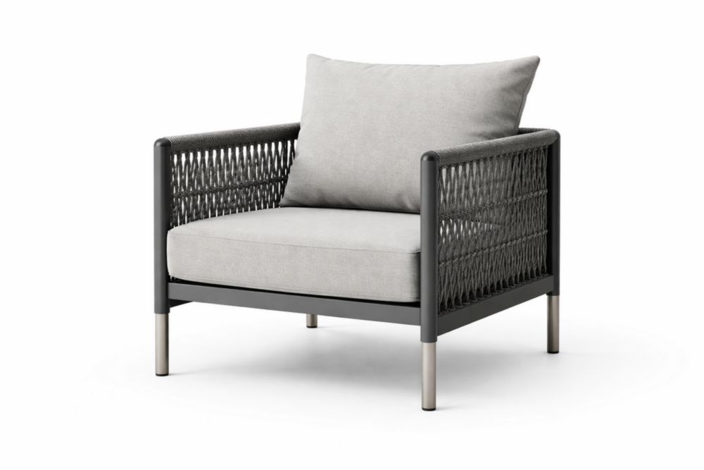 Poltrona da Giardino Singola in Acciaio e Poliestere Grigio